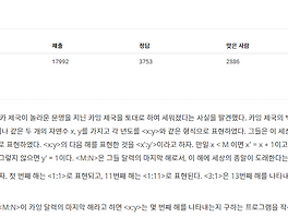 백준 14391 / 종이 조각 문제를 풀 방법을 궁리하는데 꽤 걸렸다. 내가 발견한 해결책은 예를 들어 2x2라면 0000,0001,0010........1111(총 16가지)를 배열에 넣고 (넣는 방법은 이진수를 이용했다) 0이면 가로 1이면 세로로 정한다음 가로로 한번 읽어 생긴 값과 세로로 한번 읽어 생긴 값을 더하는 것이다. 어려운 문제처럼 보이지만 해결법만 찾으면 그리 어렵지 않게 풀 수 있는 문제다. 코드 123456789101112131415161718192021222324252627282930313233343536373839404142434445464748495051525354555657585960616263646566676869707172737475767778798081828384858687888990919293949.. 백준 2580 / 스도쿠 백트래킹로도 풀 수 있지만 충분히 DFS로도 가능한 문제. 처음에 접근을 잘못해서 굉장히 헤멨다. garo[i][j]는 i 번쨰 가로에 j라는 수가 들어갔는지를 나타내는... 식으로 sero와 sq를 선언했다. 그중에서도 3X3 구역을 정하는 3*(x/3) + (y/3) 같은 수식을 만들어내는 머리가 필요한 문제다. 코드 1234567891011121314151617181920212223242526272829303132333435363738394041424344454647484950515253545556575859606162636465666768697071727374757677787980818283848586878889#include#include#include#includeusing namespace .. 백준 9663 / N-Queen 어느 기업 입사 문제라던데, 생각해내기 너무 힘들어서 결국 답을 봐버렸다. 이 문제는 진짜 머리가 좋아야 풀 수 있는 거 같다. n의 최대값이 15이기 때문에 최적화를 해야되는 문제. 아이디어는 이렇다. 모든 행과 열에 하나씩 놓여야하는 건 기본, 대각선이 문제인데, 대각선을 체크하는 배열을 1차원으로 선언해야한다. /의 경우, (row+col)의 값이 일정함을 이용. /(의 반대대각선)의 경우, (row-col+n)의 값을 일정함을 이용. 한 행마다 퀸을 하나씩 추가하는 방식으로, 추가하기전 체크를 해주고 추가하는 방식으로 풀 수 있다. 아마 시간초과 때문에 이렇게 최적화를 한것 같다. n이 작다면 그냥 2차원 bool 배열로 쉽게 풀 수 있다. 코드 1234567891011121314151617181.. 백준 1248 / 맞춰봐 문제 설명에 온갖 말장난을 쳐놔서 이해하는데 오랜 시간이 걸렸다. 요약하자면, -10~10, 총 21개의 수로 입력받은 결과를 만족하는 n개의 수를 찾는 문제. 중복이 가능하기 떄문에 총 21^n개의 경우의수가 발생한다. (n=10일 경우 시간초과가 무조건 발생한다) 그렇기에 몇몇 체크를 추가하여 걸리는 시간을 줄여야 한다. 여기서 관찰력과 아이디어가 필요한데, 입력받은 부호(-,0,+)중 S[i][i]는 i의 부호를 말하고 있다는 점이다. 그러나 이 점을 활용하여 코드를 구성해도 시간초과가 걸린다. 여기서 또 하나 체크를 추가해주어야한다. 정답 배열 ans에 담긴 숫자가 n이 될때마다 체크를 하지말고, 숫자가 담길떄 마다 체크를 실행하는 것이다. 이런 자잘한 아이디어를 생각해내기 힘들기 떄문에 굉장히 .. 백준 14889 / 스타트와 링크 순열을 이용한 브루트 포스 문제. 아이디어가 필요하다. n의 최대값이 20이기 떄문에 20명으로 구성된 순열에 대해 모든 값을 구하는 건 시간초과가 발생한다 (20!) 그렇다면 20명을 두 팀으로 나누는 아이디어가 필요. 해결법은 0(n/2개)과 1(n/2개)로 구성된 n짜리 배열을 만들고, 첫번째 팀은 0 두번쨰 팀은 1로 배정받는 방식이다. 코드 12345678910111213141516171819202122232425262728293031323334353637383940414243444546474849505152535455565758596061626364656667686970717273747576777879808182838485868788#include#include#include#include#i.. 백준 1339 / 단어 수학 순열, 백트래킹을 이용한 문제. 처음에 풀땐 굉장히 헤맸다. 들어간 알파벳의 우선순위를 정하고 우선순위에 맞게 숫자를 부여하는 방식을 사용했었는데, 계속 반례에 걸리는 듯하여 순열을 사용해서 풀어보았다. 여기서 처음 알게된 유용한 함수가 있다. 바로 vector안의 중복된 것들을 모두 지워주는 함수. v.erase(unique(v.begin(), v.end()), v.end()); unique 함수는 vector 내부의 중복된 값들을 맨 뒤로 정렬하고, 자신이 바꾼 vector의 end() 부분을 반환한다. 그 부분만 erase해주면 중복제거가 된다. 또 string s 에 대해 for(char x : s)를 사용하면 x가 s의 한 글자씩 입력받는다는 사실도 처음 알았다. 두 개다 유용한 함수니 기억해두.. 백준 2529 / 부등호 순열을 먼저 만들고, 그 사이사이에 입력된 부등호를 껴놓은 후 모든 조건을 만족하면 출력하는 문제. n개의 숫자로 모든 순열을 만들어보는 함수인 next_permutation과 prev_permutation이 있음을 잊고 있었다. next_permutation은 오름차순이기 때문에 최소값을 구할 때 쓰고, prev_permutation은 내림차순, 최대값을 구할 때 쓰면 된다. 코드 12345678910111213141516171819202122232425262728293031323334353637383940414243444546474849505152535455565758596061626364#include#include#include#include using namespace std; int n;vec.. 백준 6064 / 카잉 달력 정확히 1년전에 풀어봤던 문제. 그때는 막 공약수도 구하고 복잡하게 풀었던 거 같은데. 강의를 보니 꽤 쉽게 풀리는 문제였다. 우선 year를 1씩 늘려가며 푸는 방식은 m,n의 제한이 4만이기 떄문에 시간초과가 발생한다. 카잉달력에서 앞자리와 뒷자리를 1씩 빼본 것이다. 1을 뺴보니 정확히 눈에 띄는 특징이 생긴다. 23을 예로 들면, 23을 5로 나눈 나머지가 3이고 7로 나눈 나머지가 2, 즉 가 됨을 알 수 있다. 이 패턴을 발견하면 쉽게 풀 수 있다. 코드 12345678910111213141516171819202122232425262728293031323334353637383940#include#include#in